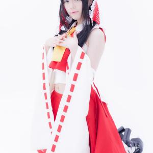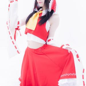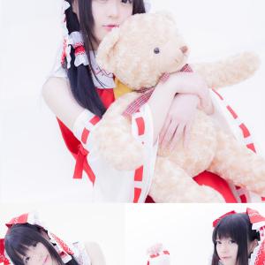抱着小熊的神社巫女,まきろん清萌扮演《东方Project》的博丽灵梦,摄影师たくはち作品,附人设图。