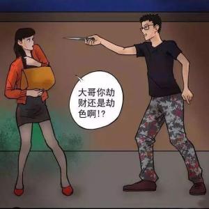 女孩下班回家的路上,遭遇男子持刀打劫,在男子的威胁下,女子把丝袜脱下来,于是男子把丝袜套在头上,心满意足地去打劫了,这下,没有人认得出了!