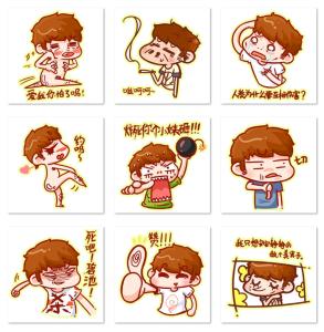 一位有点坏坏贱贱的男孩子,各种夸张搞笑的表情,画师杨草坪男孩透明表情第一组。