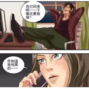 女孩下班了,打电话给男朋友,让他到公司楼下接他,男朋友玩电脑不想去,女孩说她怕黑,男孩说多大的人害怕黑呀,于是,女孩说出了男孩最怕的话,你怕不怕绿呀。男孩立即去接女孩了。