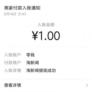 淘新闻1元现金红包