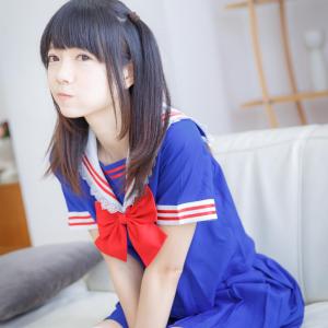 萌萌哒呆毛,鼓嘴卖萌,原创水手领校服,萌妹子まゆふぁむ还原《电波女与青春男》藤和艾莉欧形象。