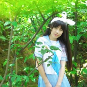 森林里的美丽祝福,萌哒哒的兔耳朵,百斩少女刘兔兔森水手服森之光主题摆拍。