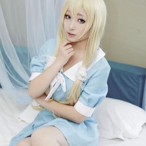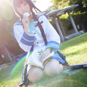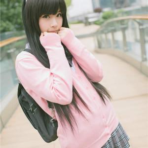 背起小书包,谦逊少女八九寺真宵校服Cosplay。