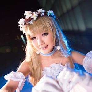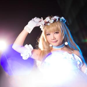 像小灯笼一样含苞欲放,形似风铃的萌花朵主题服饰,胡纸姐姐扮演《LoveLive!》南小鸟风铃花SR卡牌形象,附卡牌原图。