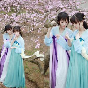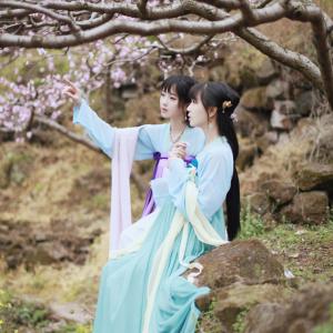 若将人泪比桃花,泪自长流花自媚。七七和加加代穿着齐胸儒裙汉服,桃源仙境清萌摆拍。摄影师影子的白日梦作品。