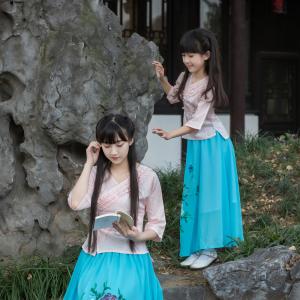 姐妹,大美女是大乔,小美女是小乔,古韵幽幽的改良汉服摆拍。