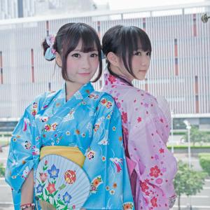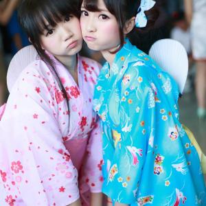 七夕节,和闺蜜背靠背,广州YACA2014现场橘子酱和小龟穿着和服浴衣摆拍。