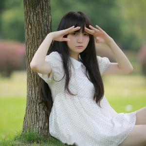 方便凉快萌萌哒,苏里柟穿着雪纺波点罩衫自然清新摆拍。