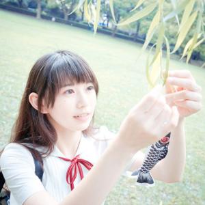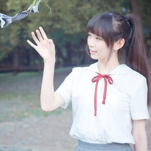鲤鱼旗在天空迎风摆动,成长吧,少年!许夏幽夏季制服鲤鱼旗主题摆拍。