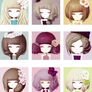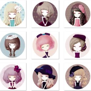 眯眼的柔美微笑,百合姑娘、彼岸花姑娘、风信子姑娘、满天星姑娘、茉莉姑娘、薰衣草姑娘、鸢尾姑娘、紫罗兰姑娘、紫菀姑娘等《花花姑娘》女孩圆头像,画师桑诶姆作品。