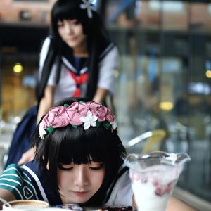 双黑长直伙伴,最开心的事情,就是和你在一起。Niku和残无穿着和服浴衣,一组百合向Cosplay。