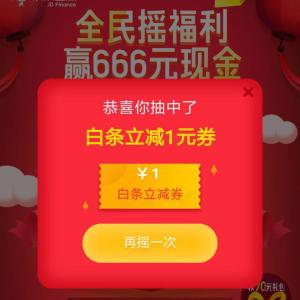 点链接,下载京东金融APP,进入后,点 立即参与(如未弹出,点右上角的礼包)。先摇一摇,再点底部 分享页面 到微信,再摇一摇。白条还款,还可再摇一次。小希没有白条还,所以只摇了两次,中了白条立减……