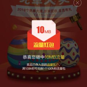 电信用户进入微信,点右上角+号,添加朋友,公众号,搜索 中国电信客服。关注后,回复 圣诞节。点 圣诞流量大狂欢,绑定电信手机,每天有三次机会抽流量包。奖品有900M,600M和300M流量包,均以300M为单位赠送,共计3.5万个,送完为止,可以每天来试试运气哦!