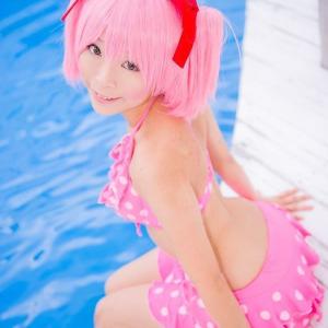 可爱双马尾,魔法少女小圆泳装Cosplay一组。