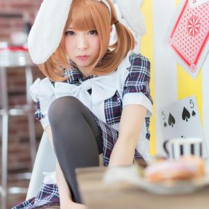 吐舌卖萌,可爱兔娘漫游爱丽丝世界,Tomia穿着束腰小洋装还原画师Sakizo的爱丽丝形象,附人设参考图。