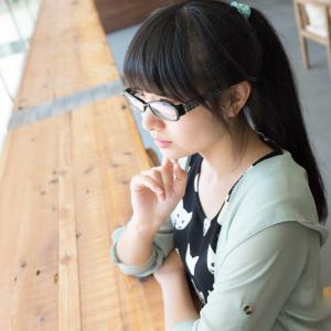 单马尾,眼镜娘,摄影师奕成的咖啡馆里萌妹沉思的瞬间。