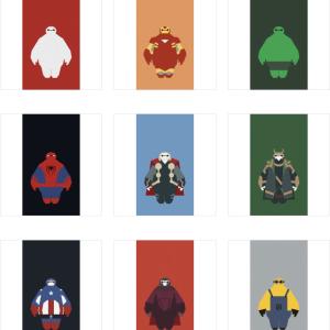 超能陆战队大白Baymax扮演钢铁侠、绿巨人、蜘蛛侠、雷神、洛基、美国队长、绝地武士和小黄人等美国超级英雄的萌萌哒手机壁纸。