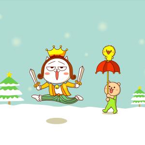 嗷大喵手持双剑,扮成国王,带你披荆斩棘,带你飞,嗷大喵、熊小二和么么鸭联合卖萌,国王版手机及电脑壁纸。