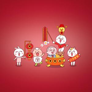 嗷大喵、兔小爱、熊小二、么么鸭及嗷叔春节拜年壁纸