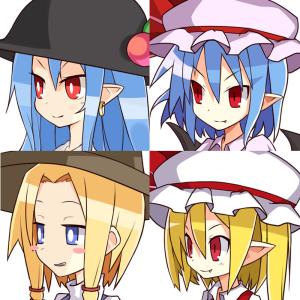 魔界战记画风,比那名居天子、蕾米莉亚·斯卡雷特、芙兰朵露·斯卡雷特、泄矢诹访子等东方Project角色头像,画师秘翠作品。