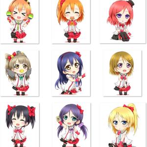 音乃木阪幼儿园萌化Q版形象,星空凛、高坂穗乃果、西木野真姬、南小鸟、园田海未、小泉花阳、矢泽妮可、东条希和绚濑绘里等LoveLive!中μ's成员头像,画师カラモネーゼ作品。