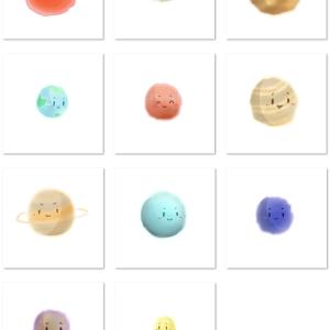 太阳,水星、金星、地球、火星、木星、土星、天王星、海王星、冥王星和月球等太阳系星球萌化头像,画师苏三作品。