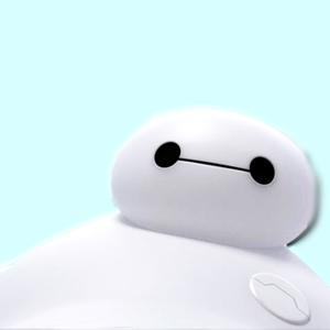 纯蓝色背景,立体形象,竖食指,抱小宏,变身战士的《超能陆战队》大白头像,Semi-Hiatus制图。