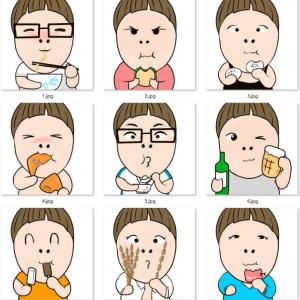 吃着面条、汉堡包、包子、鸡腿、汤圆、啤酒、冰淇淋、串串香和苹果的男孩,小明明男孩版吃货头像,画师漫画家小明作品。