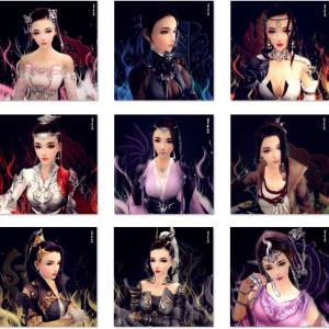七秀坊的秀姐、唐门的炮姐、明教的喵姐、天策府的军娘、万花谷的花姐、丐帮的丐姐、藏剑山庄的二小姐、苍云的盾娘、五毒教的毒姐、纯阳宫的道姑,剑网三黑底焰火系列3D成女头像,西凉Cassie作品。