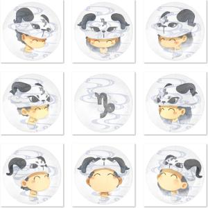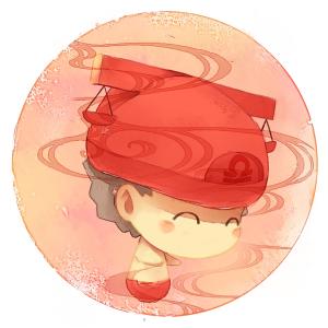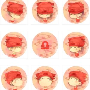 头戴天平,保持平衡,大头Q版风格,萌萌哒天秤座星座情侣圆头像,画师梁阿渣作品。