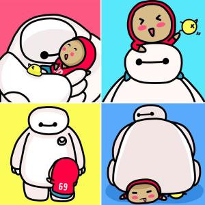 萌汉子和大白的亲密互动,抱一抱,骑一骑,还可以抱大腿的萌汉子与大白Baymax头像。画师陈骏基作品。