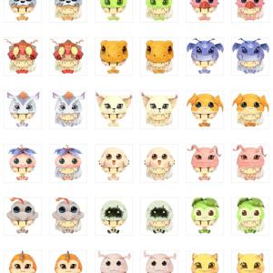 处于幼年期及成长期的数码兽萌化成卡通帽子,梁阿渣《数码宝贝》主题情侣头像。