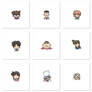 柯南、小兰、小哀、阿笠博士、毛利小五郎及少年侦探团《名侦探柯南》主要角色小小头像,大绵羊BOBO作品。