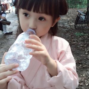 在秦时明月片场,扮演小月儿的刘楚恬做鬼脸,喝水的萌态剧照一组。