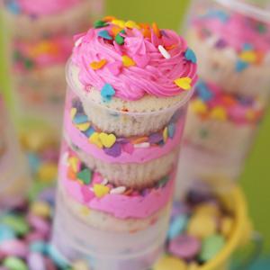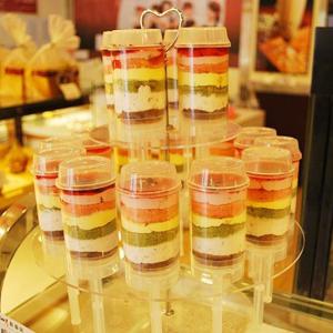 一层奶油,一层蛋糕,层层累积,放进推筒里,可以边推边吃的蛋糕。