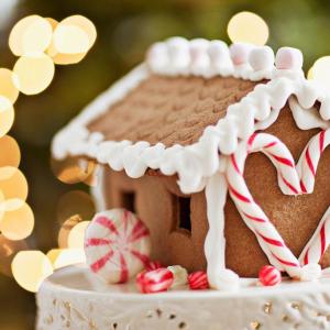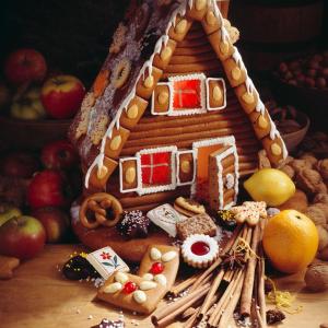 用曲奇饼干和巧克力搭成的可爱房子