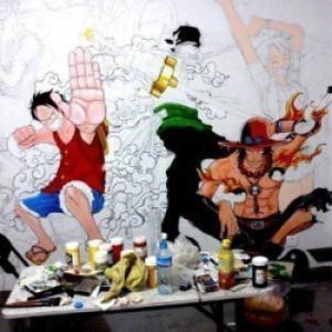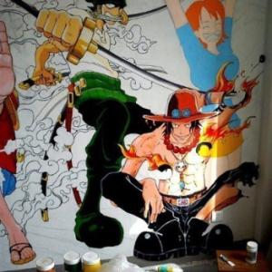 告别光秃秃,教室墙面手绘海贼王全角色图。