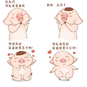 粉色小猪,八件和三蛋互相吐槽的情侣表情,画师朱八贱作品。