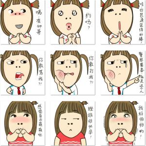 咦,有帅哥,约吗?哇,你装逼装得好棒!你敢骂我,你敢打我,感觉自己萌萌哒。无论是花痴少女,还是红领巾同学,扎小辫的女孩小明表情。漫画家小明作品。