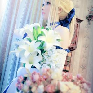 手持鲜花的女剑士,Saber lily周年礼服Cosplay组图。