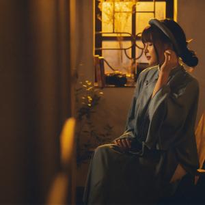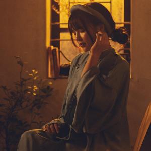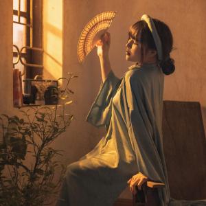 黄昏老屋窗边穿着越南长袄奥黛少女持扇复古摆拍