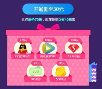点下面的链接,点 开通低至30元 按钮,登陆QQ,即可开通QQ超级会员SVIP1月+腾讯视频1月VIP+红钻2月。
