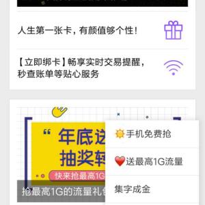 进入微信,点右上角+号,添加朋友,点 公众号,输入 中信银行信用卡 ,关注,点 精彩福利,点 送最高1G流量,点 转盘。如果没中,明日再试。如果中了,点 去提取,提取流量,输入手机号码,确定,流量到账,会有短信提示。