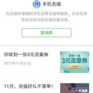 手机充值微信领3元流量券