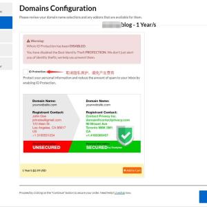 用电脑点下面的链接,输入你想注册的域名(xxxxx.blog),长度最好大于5位。然后点继续,继续,取消 隐私保护,点 绿色按钮 结账。按照下面的图示,填写 注册信息(邮箱、国家等需真实)。之后点 蓝色按钮 完成订单。稍等片刻,就可以在邮箱中收到注册成功的邮件了。