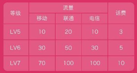 腾讯视频VIP LV5-LV7的用户,用手机点链接,登录QQ,每月可按表格,领对应等级的话费和流量。LV7用户必得,LV5-LV6用户每月10000份限量抢。