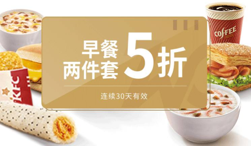 肯德基KFC早餐两件套5折卡