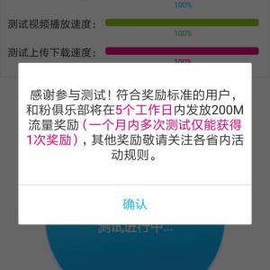 移动用户请打开WIFI,点链接,下载和粉俱乐部APP,用手机号登录,点首页“家庭众测”横幅,点击申请测试,填写真实的用户信息(宽带运营商,带宽多大,你的位置),提交后,会自动进行网页,视频,上传下载速度测试,大约需10分钟。如果测试符合要求,200M流量奖励将在5个工作日内发放。