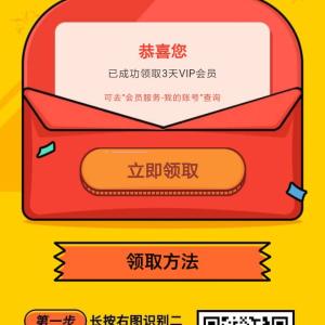 优酷黄金VIP会员 3天 需绑定优酷VIP会员微信